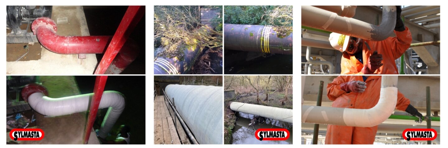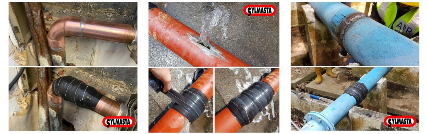 Repairs made using SylWrap HD Pipe Repair Bandage: